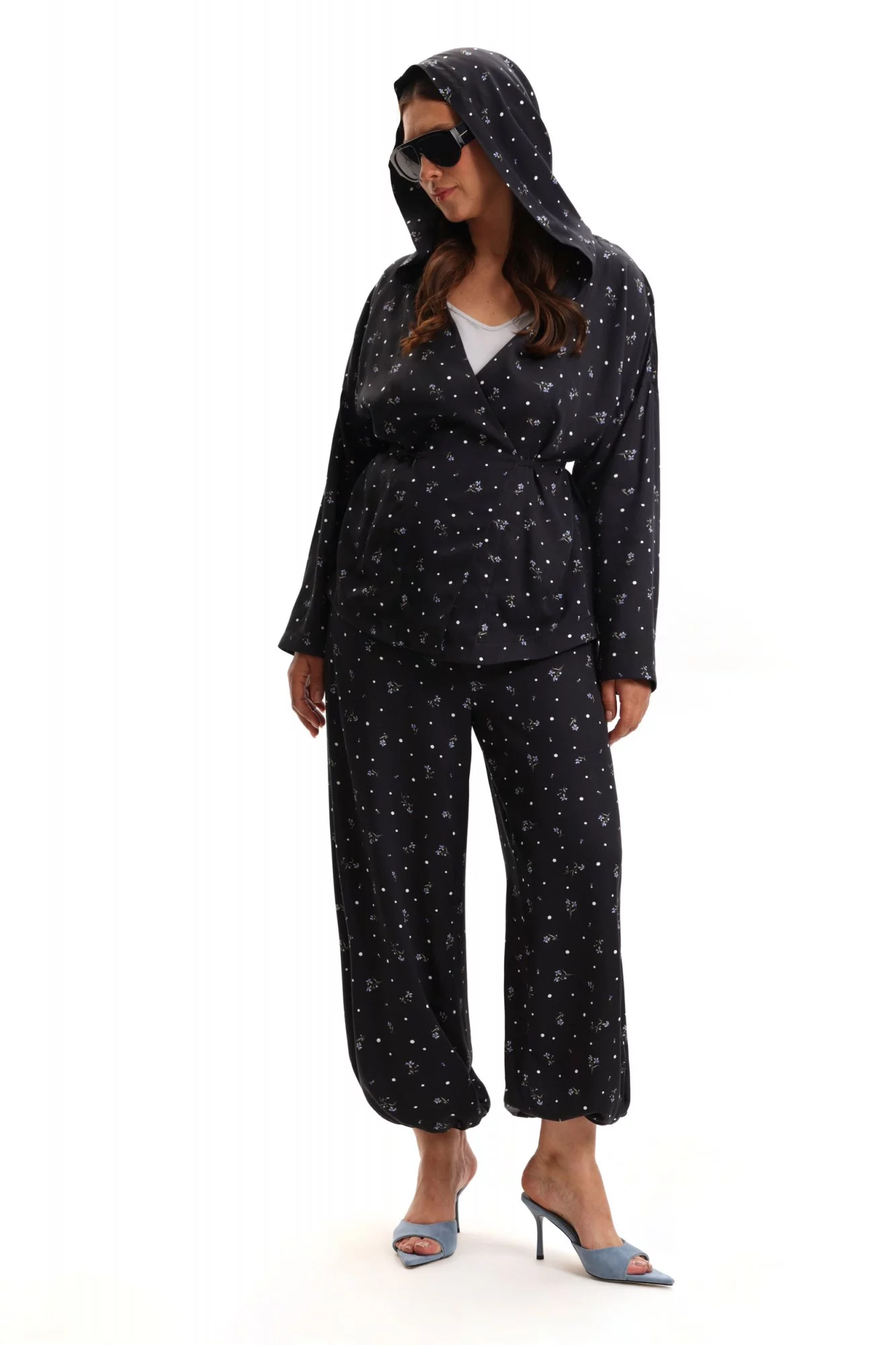 Брюки баллоны, из поливискозы с добавлением хлопка. Это свободные брюки по типу джоггеров. Брюки очень объемные, имеют резинку на талии и резинку на щиколотках. Посадка высокая. Брюки с цветочным принтом.