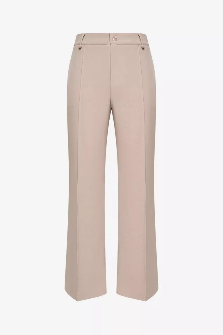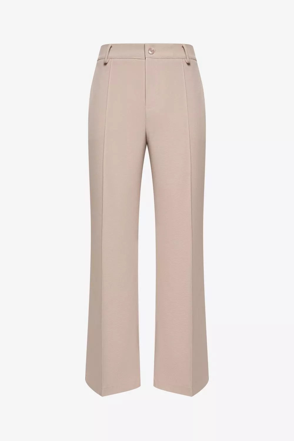 Брюки буткат из костюмной ткани. Длина на рост 158-164 см. Посадка высокая. Застежка молния. Пояс на резинке. Фасон буткат дословно означает «скроенный под ботинки». Такие брюки обтягивают ногу выше колена, а ниже идет легкое расширение.