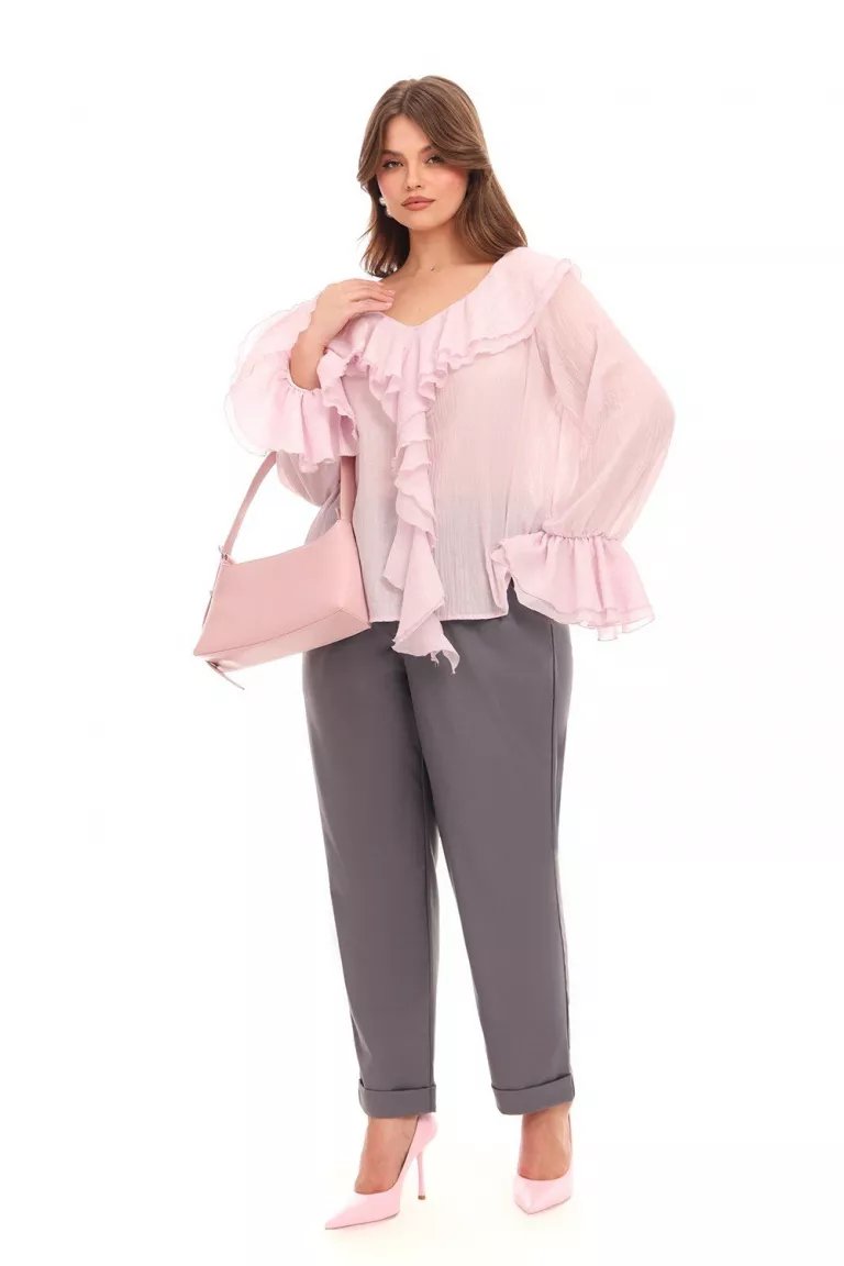 Брюки relaxed fit из смесовой вискозы. Пояс на резинке сзади, посадка высокая. По бокам карманы с отрезным бочком. По низу отворот.