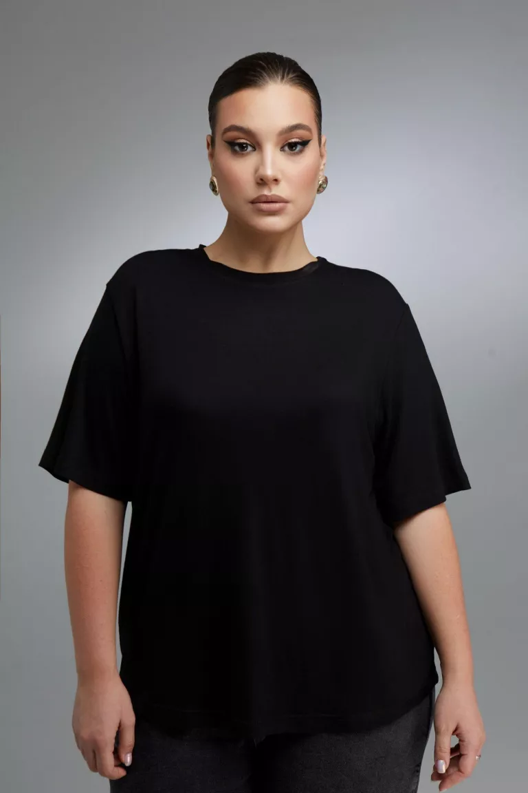 Черная футболка будет хорошо сочетаться с джинсами, брюками или юбкой. Из обуви подойдут кроссовки, кеды или ботинки. В качестве аксессуаров можно использовать часы, браслет или серьги.