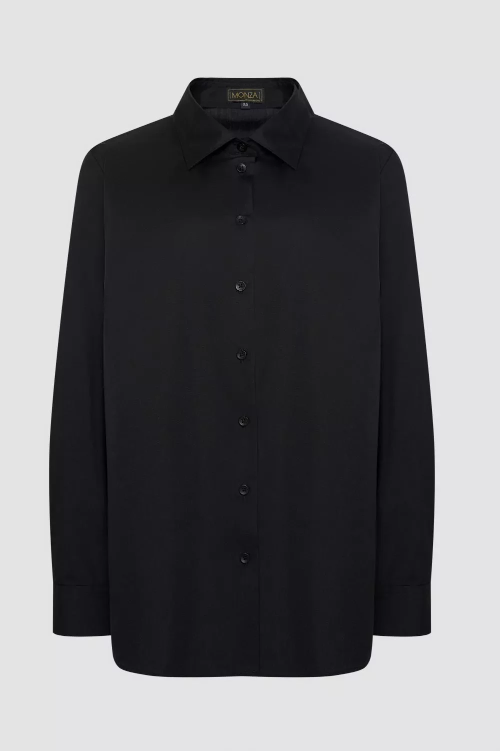 Рубашка из смесового хлопка regular (полуприталенный), однотонная, длина миди. Воротник стояче-отложной. Спереди застежка пуговицы и вытачки. Рукав длинный, на отрезной манжете, пройма широкая. Крой regular — это универсальный крой, подходящий для повседневных и более официальных образов. Этот фасон сидит не слишком широко, но и не слишком плотно по силуэту, минимально изменяя его пропорции. Рубашки такого кроя считаются незаменимым элементами гардероба.