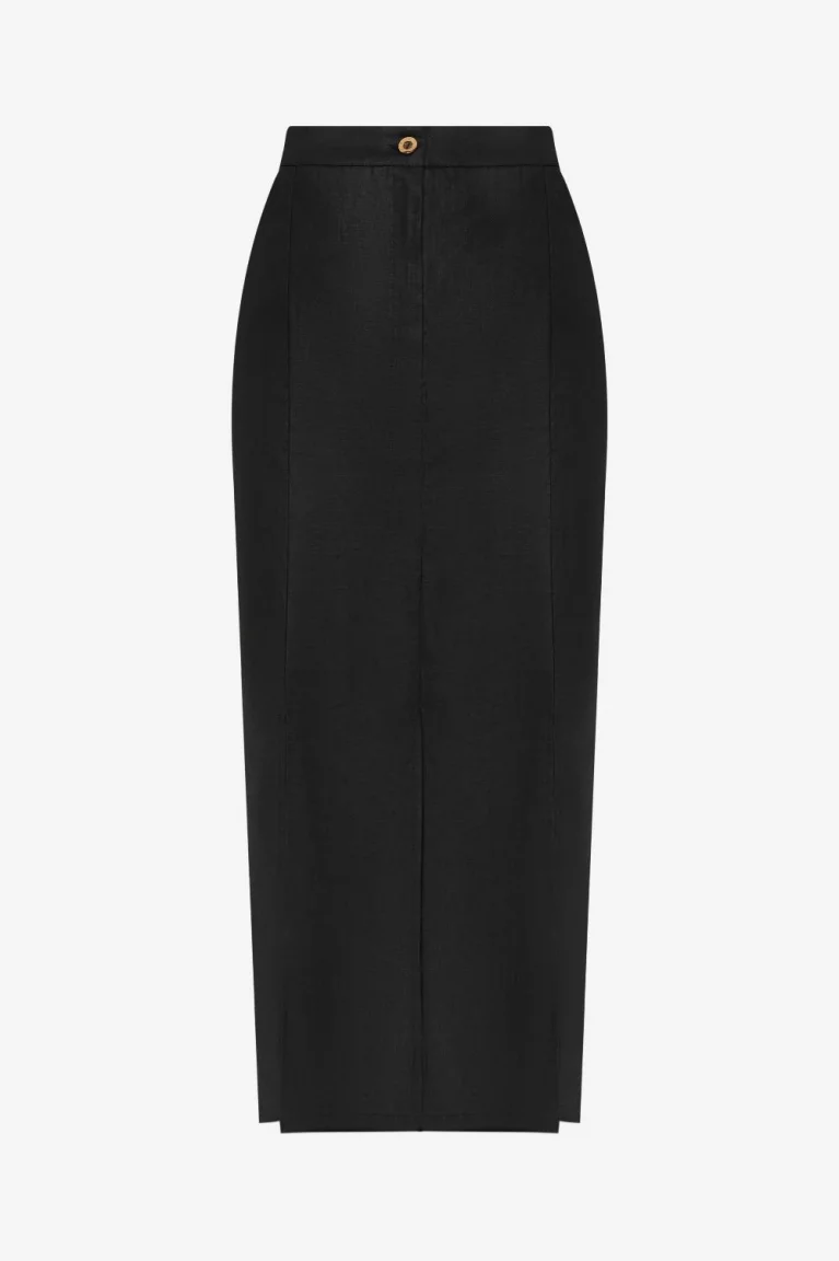 Юбка макси черного цвета изо льна с разрезами