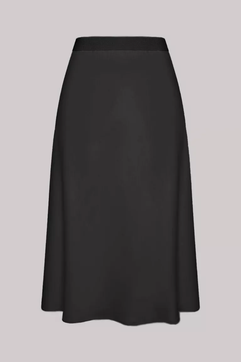 Юбка комбинация трапециевидного силуэта из смесовой вискозной ткани с атласной фактурой, на подкладке. Длина миди. Пояс втачной-резинка.