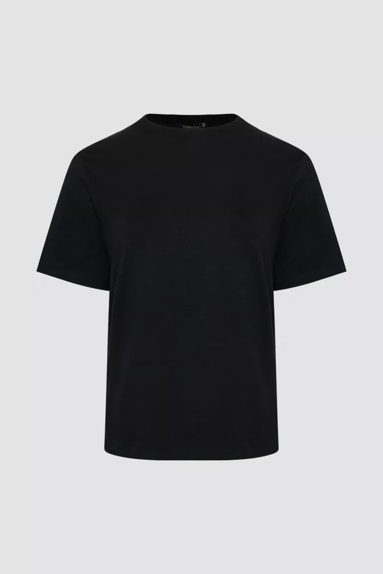 Футболка Relaxed fit отличается достаточным удобством и практичностью. Подобный крой отлично подойдет тем людям, которые хотят иметь определенную свободу при ношении одежды, которая не сковывает движения человека. Футболка характеризуется свободным кроем, который не слишком сильно обтягивает тело, в отличие от стандартного slim. Длина до середины бедра. Горловина округлая, с отделкой рибана, рукав короткий.