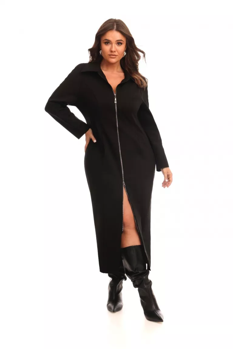 Черное макси платье футляр на молнии из облегченной костюмной ткани