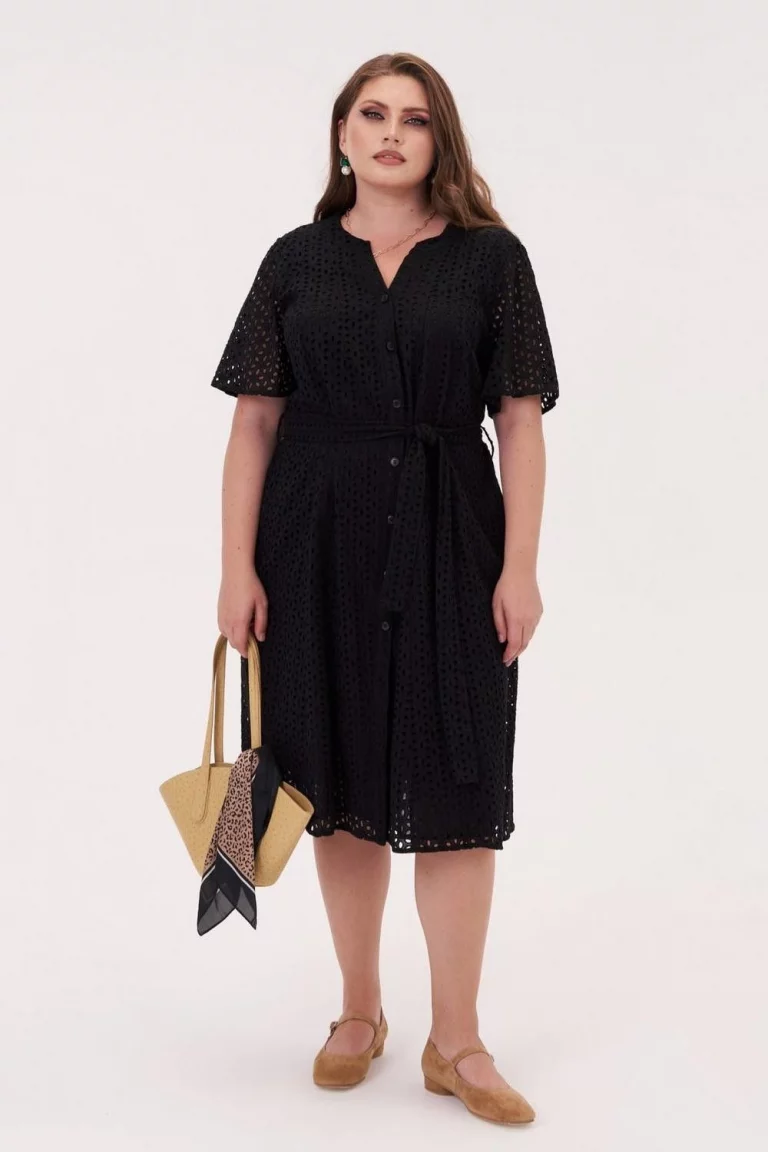 Платье на пуговицах из хлопка шитье, на штапельной подкладке, длиной миди. Рукав 3/4, пройма углубленная. Платье с расклешенной юбкой, V-образным вырезом. Комплектуется тканевым поясом.