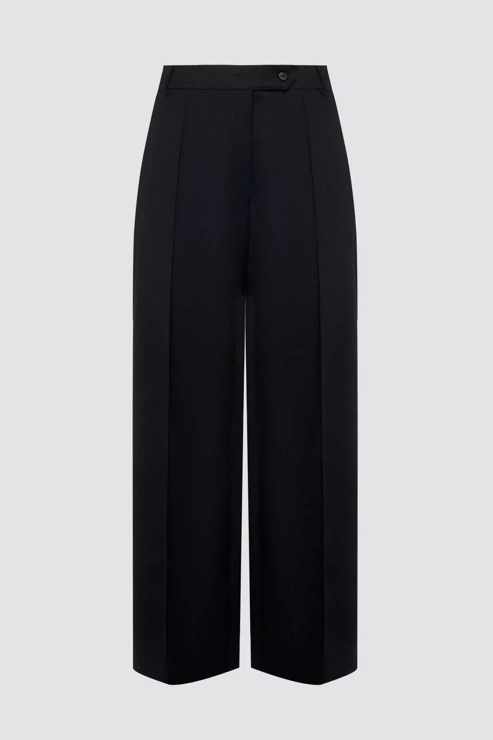 Эти классические брюки прямого силуэта из смесовой шерсти — отличный выбор для базового гардероба. С высокой посадкой и удобным поясом на резинке они сочетают в себе комфорт и стиль, подходя как для делового, так и для кэжуал образа. Молния в застёжке и простроченные стрелки спереди и сзади придают брюкам строгий и элегантный вид.