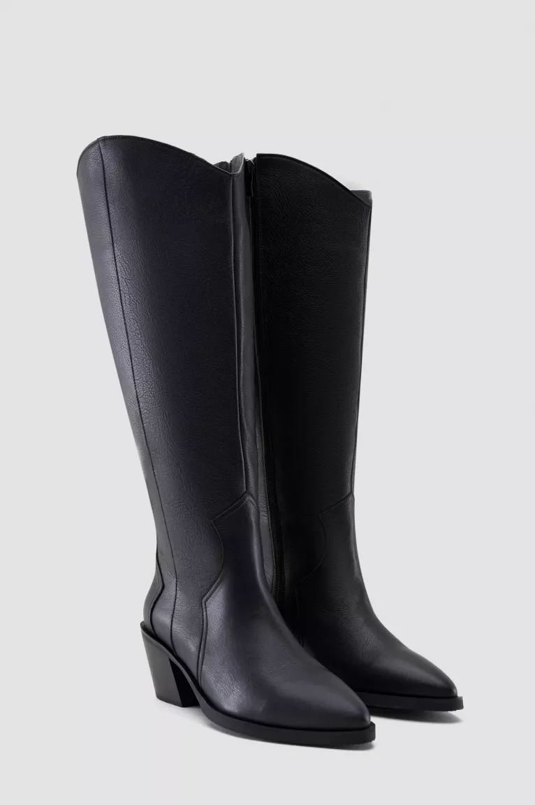 Черные кожаные ковбойские сапоги с увеличенной полнотой на молнии