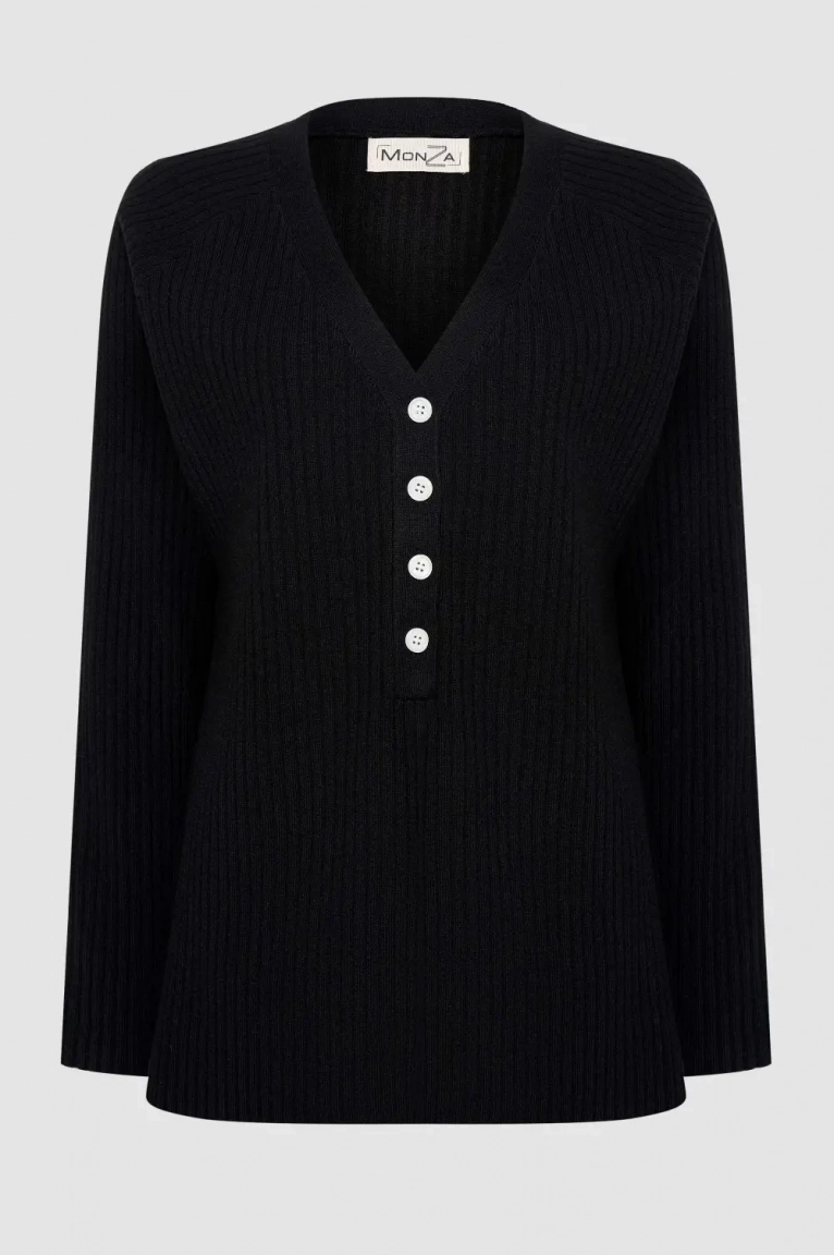 Черный легкий джемпер лапша на пуговицах