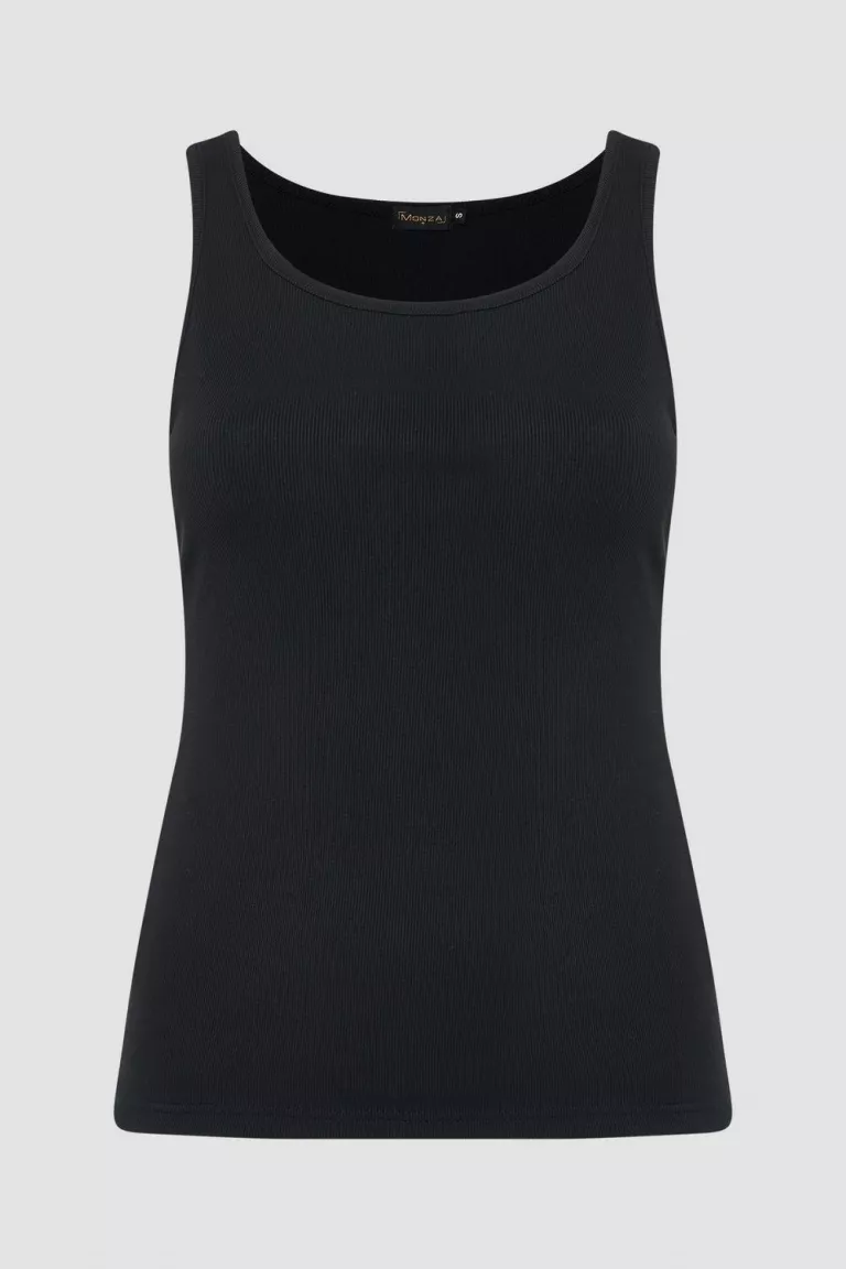 С базовыми майками и топами можно составить десятки разностилевых капсул! С брюками, юбками, джинсами и велосипедками топ Соната универсального черного цвета будет смотреться актуально и стильно.