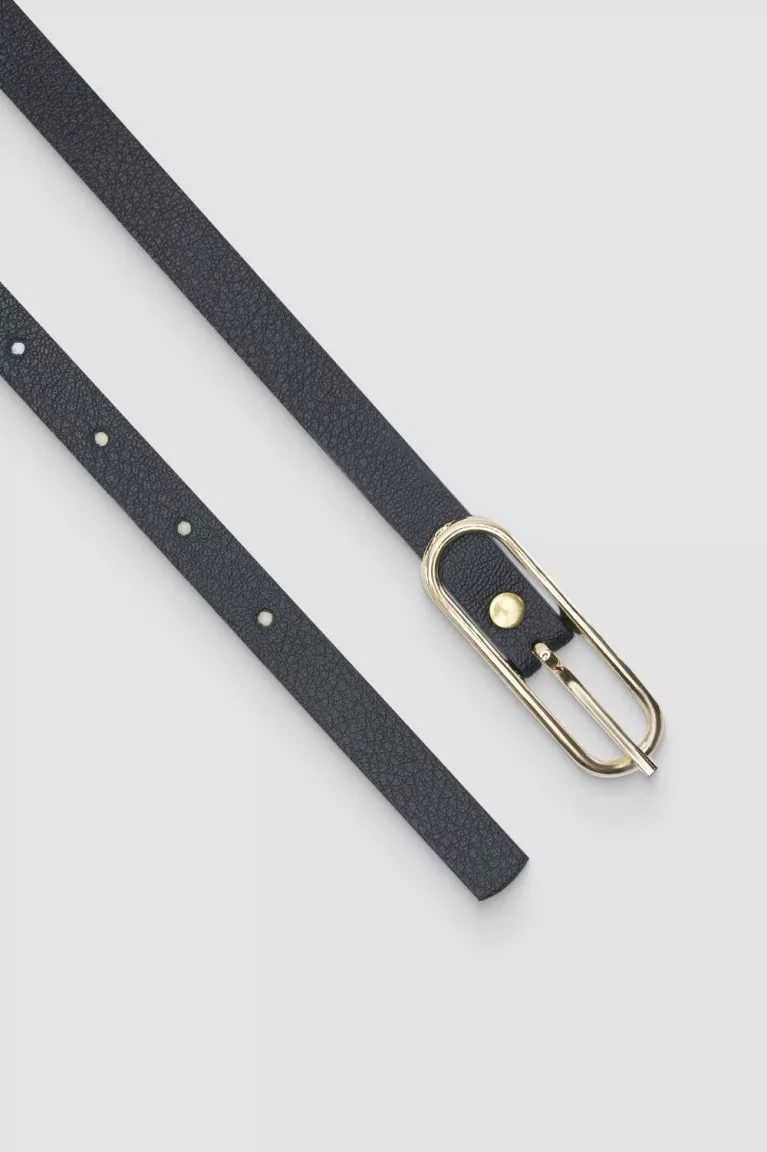 Черный узкий ремень из экокожи с овальной пряжкой