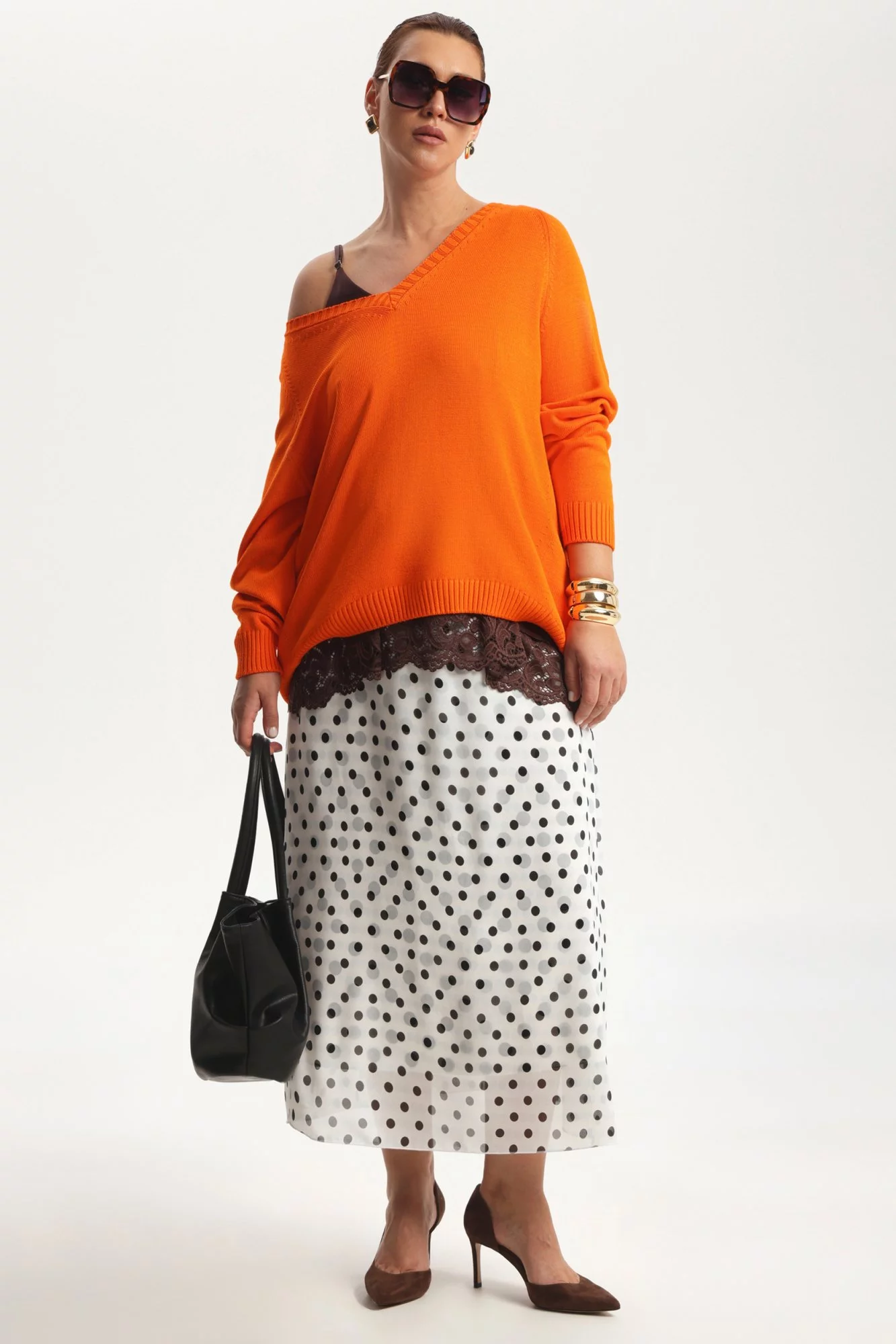 Юбка-комбинация — «родственница» платью-комбинации, а значит она универсальна и будет уместно смотреться в любой ситуации. Самый классический вариант — базовая атласная модель длиной до колена или чуть ниже. Посадка на бедрах в этом случае желательна, но совсем не обязательна. Носить такую юбку можно в офис, на прогулку, на свидание и даже на пляж — такая юбка сочетается с любым верхом.