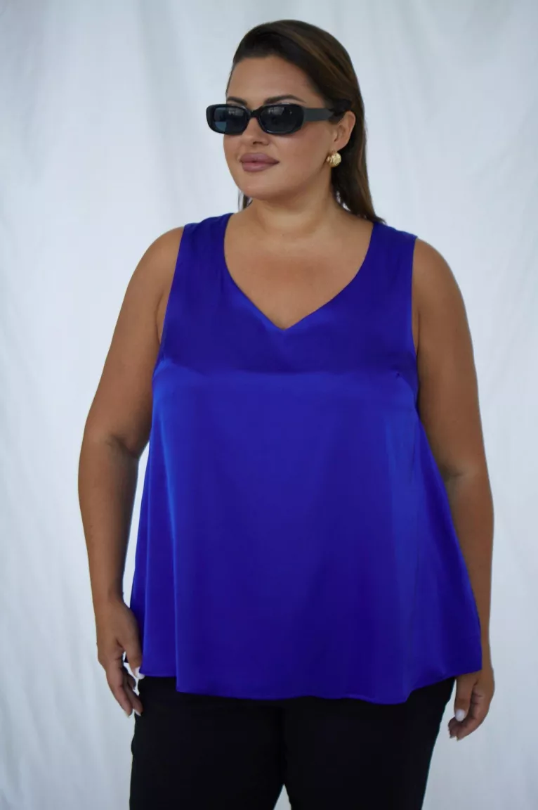 Однотонный топ является базовой вещью в гардеробе. Топ в цвете синий электрик станет акцентом вашего гардероба. Наши рекомендации следующие: наденьте шелковый топ, а в качестве нижнего гардероба используйте юбку или классические брюки. Обувь на каблуке и аксессуары завершат образ.
