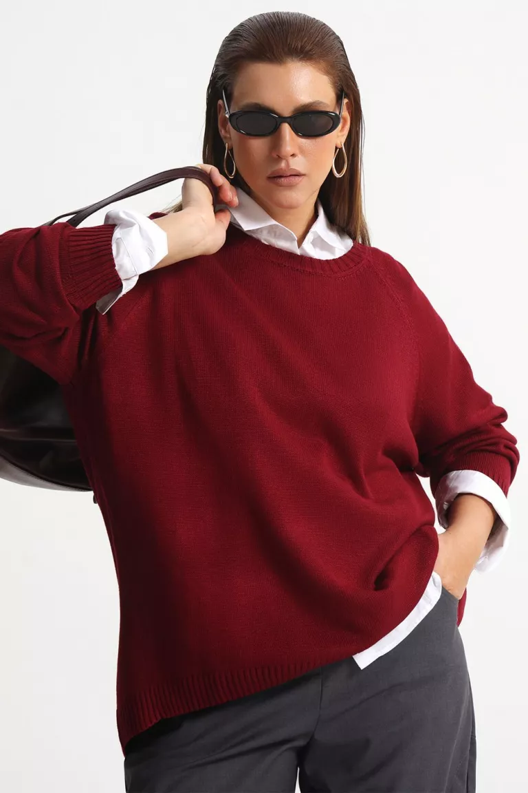 Джемпер бойфренд из вискозного трикотажа. Длина до середины бедра, разноуровневая. Горловина округлая. Рукав реглан, длинный, пройма глубокая.