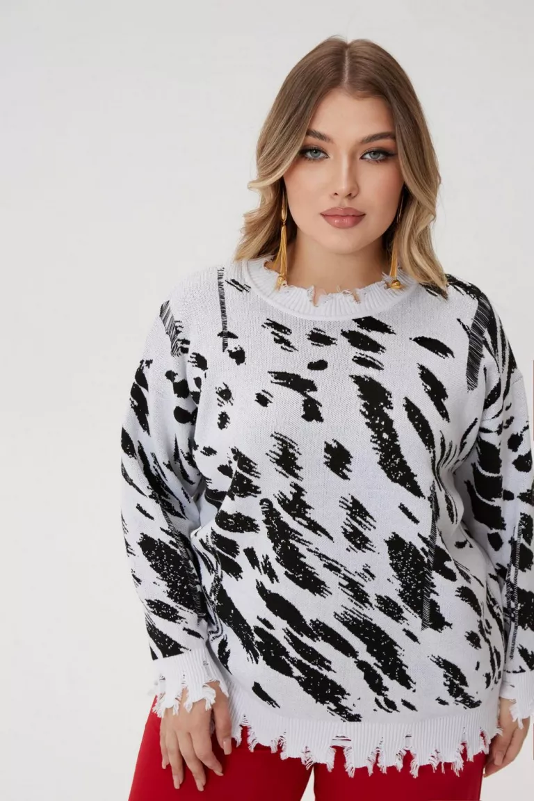 Описание: Джемпер оверсайз в стиле софт гранж, из вязанного смесового хлопка natural fabric с хорошей эластичностью. Джемпер в стиле гранж, с декоративными дырками и спущенными петлями. Рукав длинный, пройма широкая, ворот округлый.