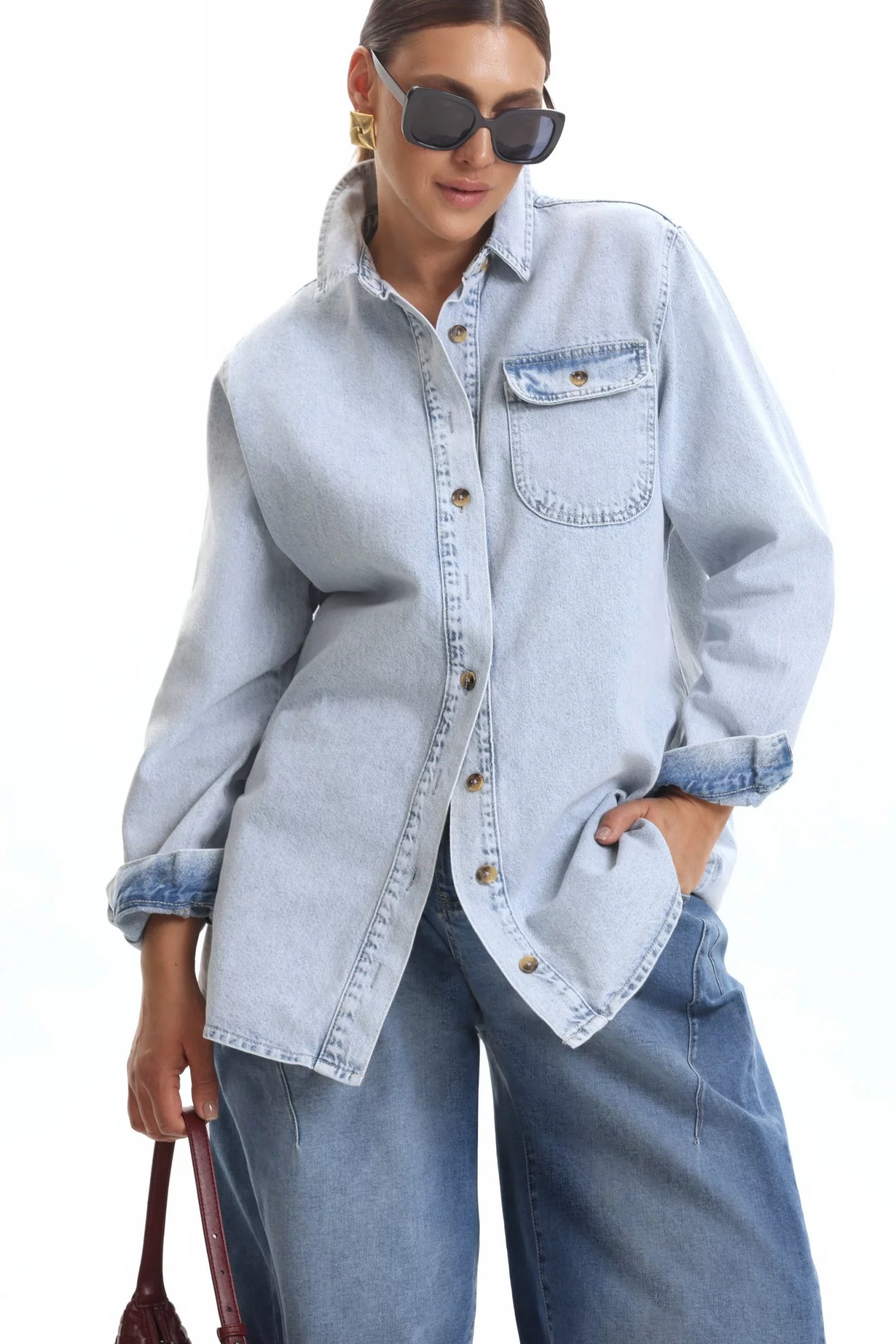 Рубашка из денима с акцентным карманом