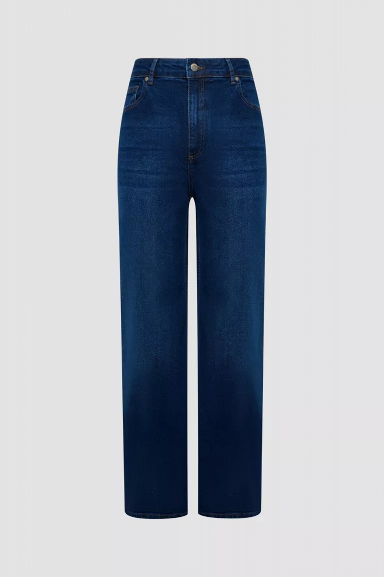 Джинсы wide leg полной длины — это стильное и удобное решение с хорошей эластичностью и прямым кроем. Благодаря высокой посадке и застёжке на молнию они идеально сидят на талии. Модель выполнена в стиле «5 карманов» и дополнена лёгкими искусственными потертостями, что добавляет модный акцент. Широкие штанины, расширяющиеся от бедер, помогают скрыть любые недостатки фигуры и выгодно подчёркивают её достоинства.