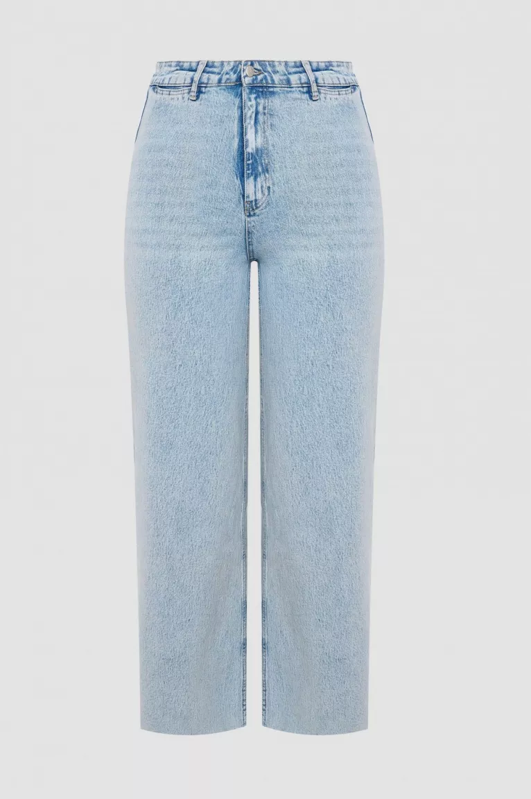 Длинные джинсовые палаццо, с широкими штанинами, с двумя маленькими внутренними карманами. Сзади карманы накладные. Застежка молния. Необработанный край по низу.