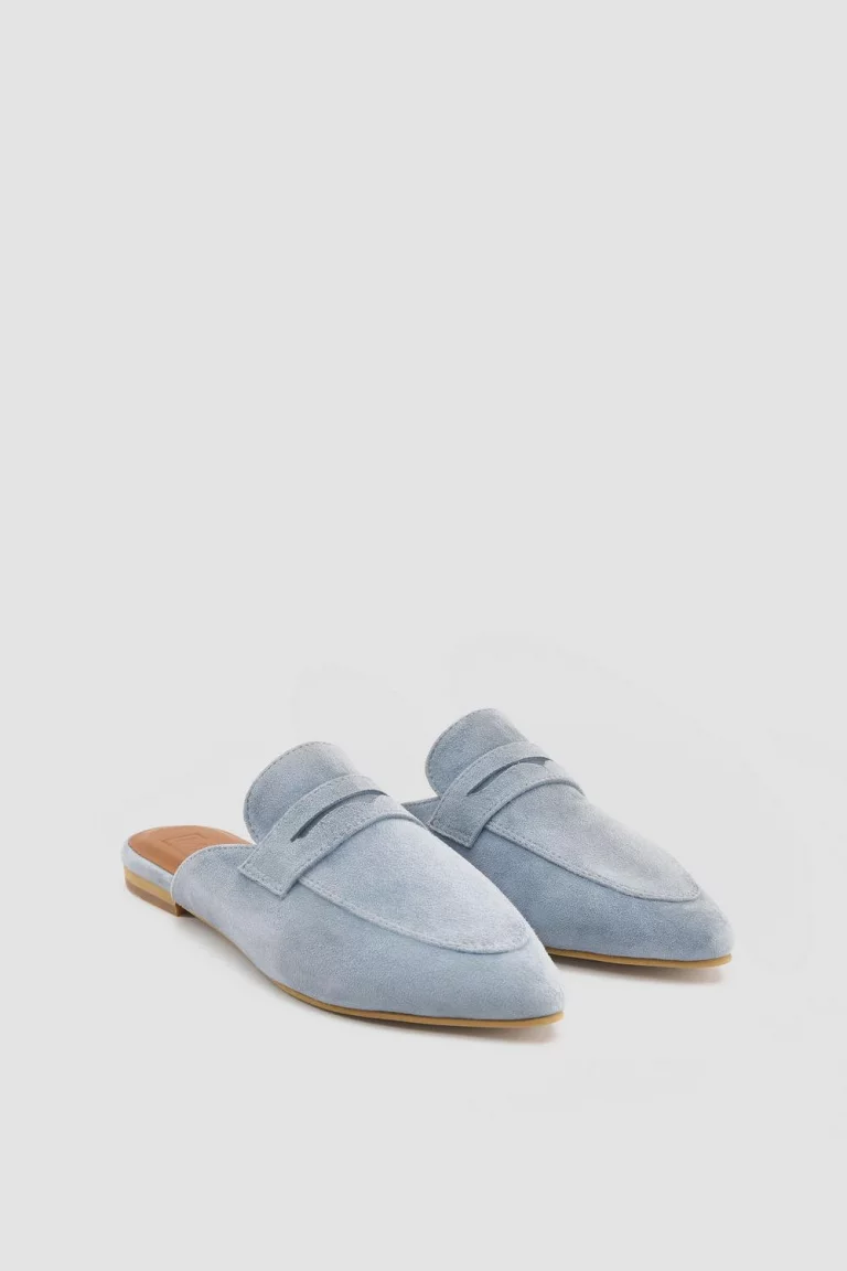 Голубые замшевые мюли Питон с увеличенной полнотой