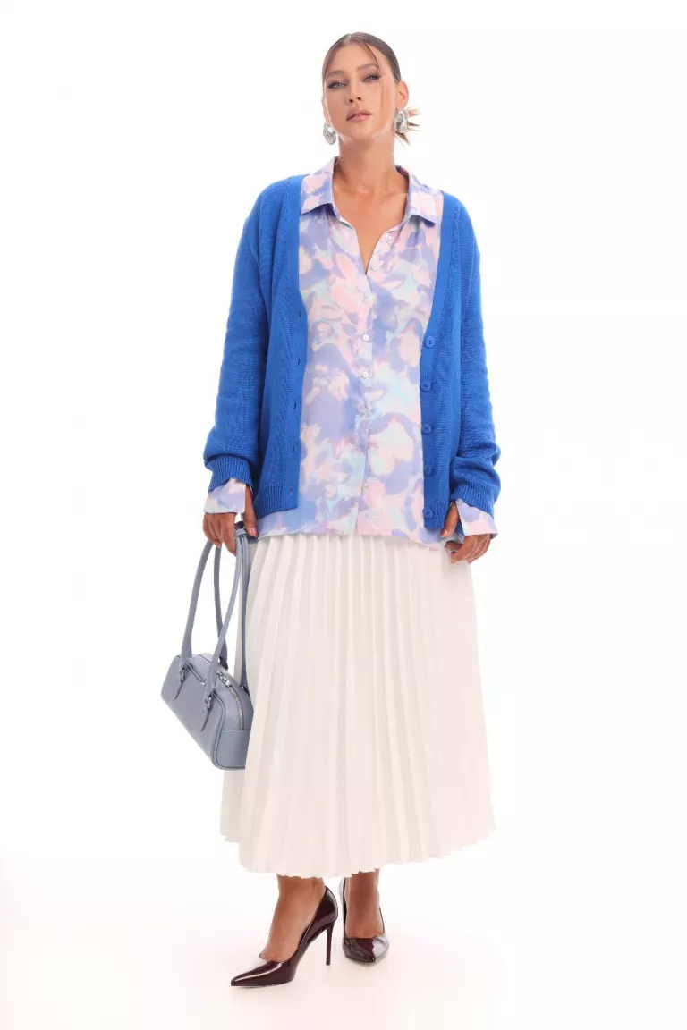 Кардиган из вязанного смесового хлопка. Вырез "V"-образный, на пуговицах. Рукав длинный.