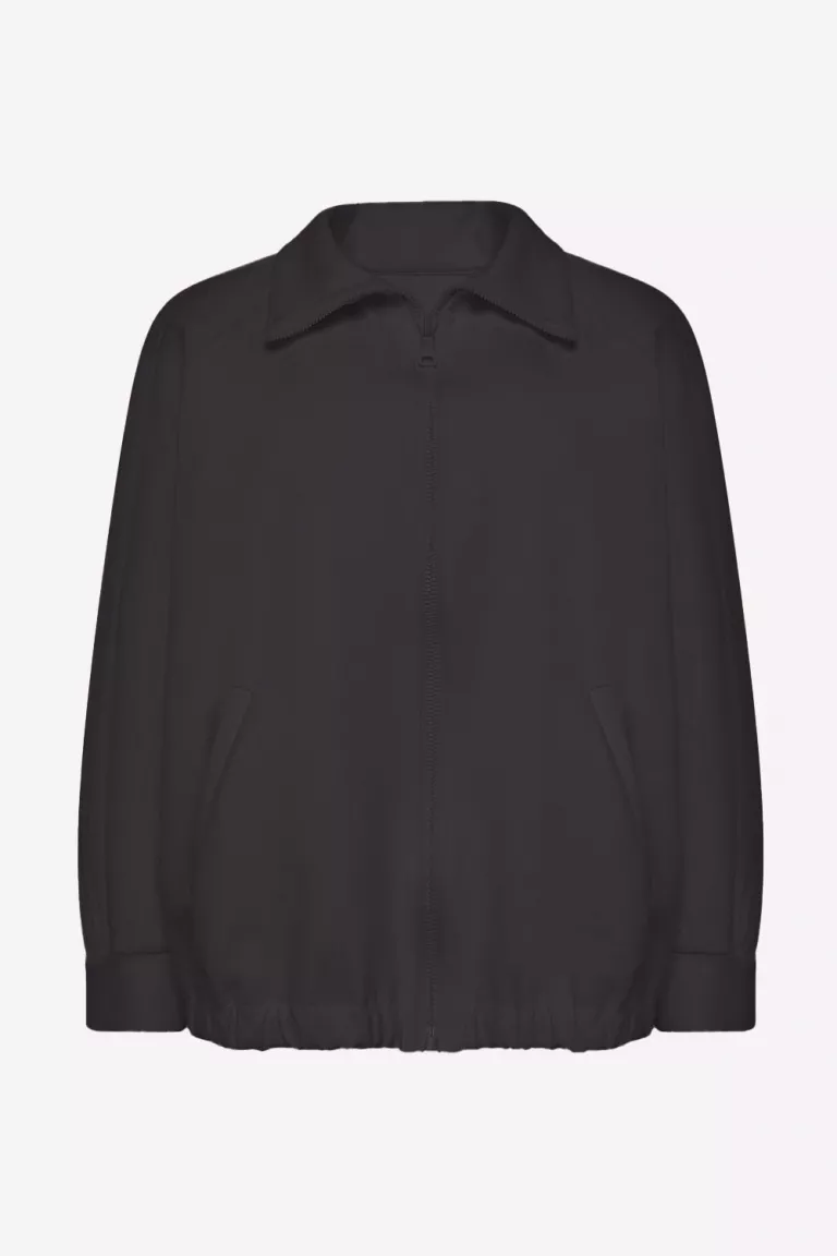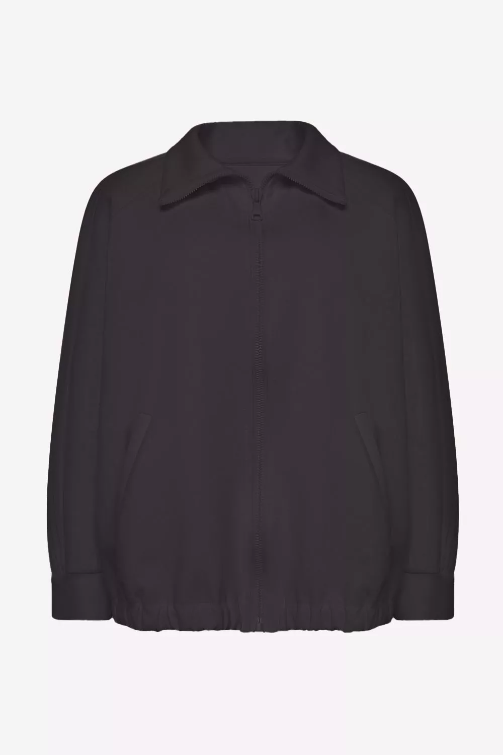 Худи без капюшона, повседневно-спортивного стиля, из хлопкового трикотажа. Длина до середины бедра. Рукав реглан, с лампасом, длинный, на манжете, пройма широкая. Горловина высокая стойка, на молнии. Карманы внутренние.