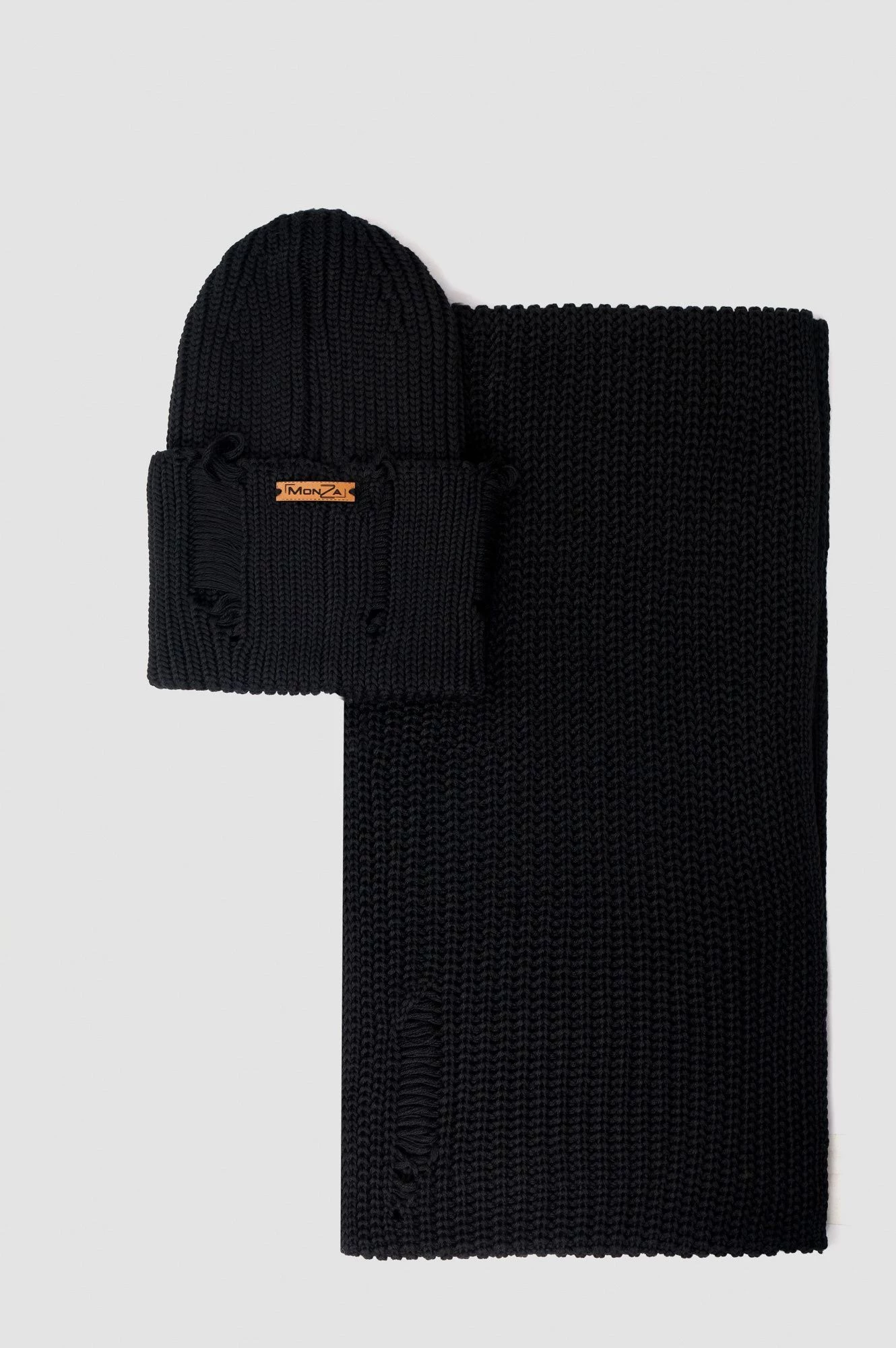 Комплект с деконструкцией черного цвета с шапкой и шарфом