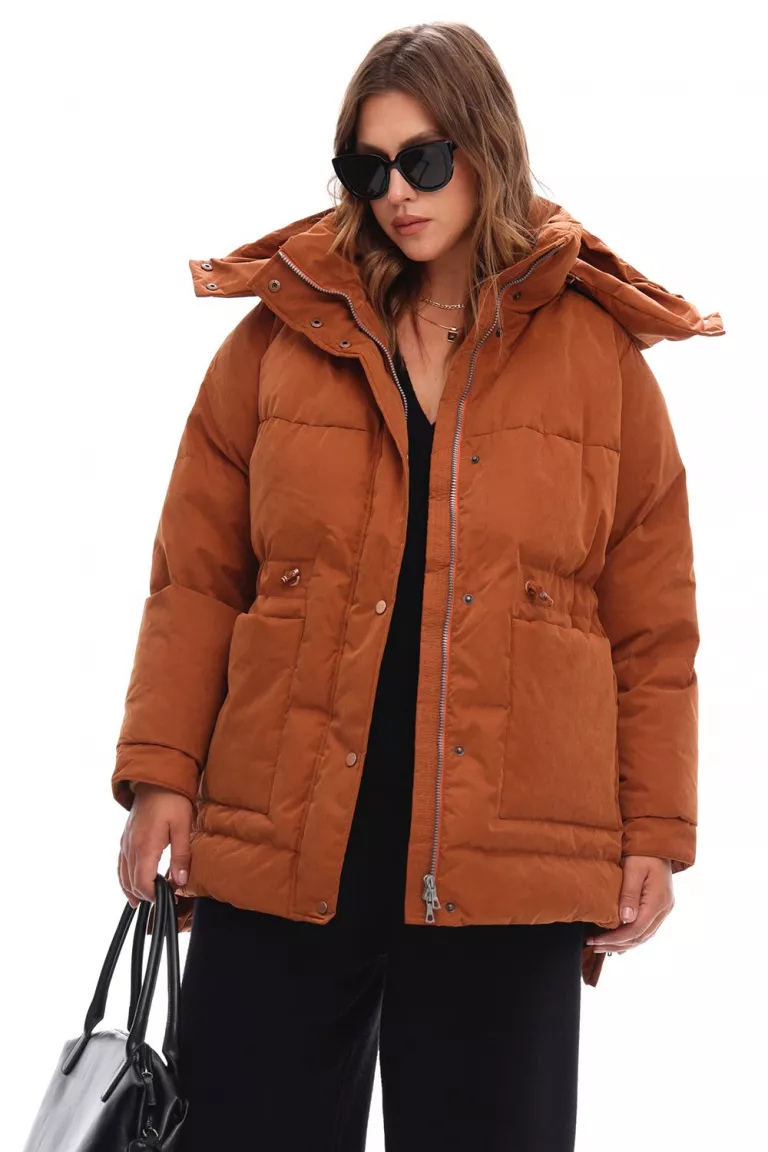 Куртка пуховик сочетает в себе сразу несколько трендов: ворот-стойка (подойдет как активным женщинам, предпочитающим спортивный стиль, так и романтичным натурам), широкая простежка, спортивный стиль, кулиска на поясе.