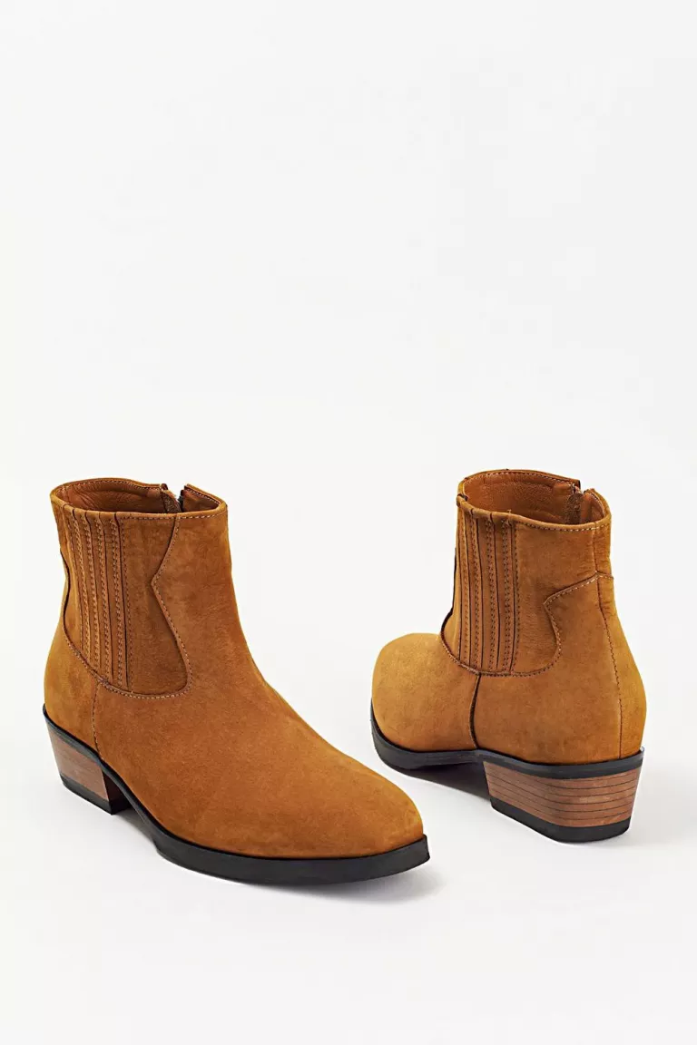 Коричневые казаки в стиле ропер из нубука с увеличенной полнотой