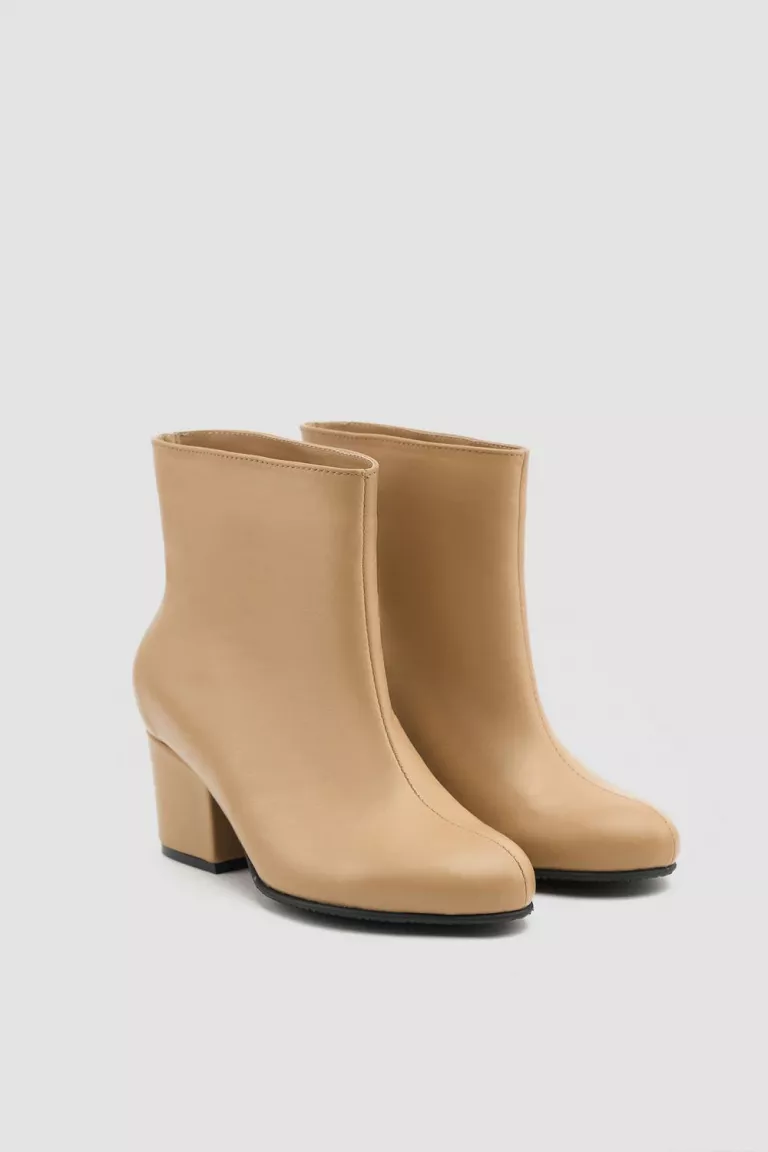 Кожаные ботильоны в бежевом оттенке с увеличенной полнотой