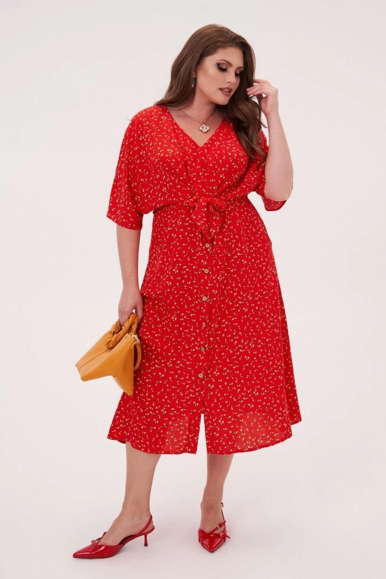 Красное платье с принтом и завышенной талией
