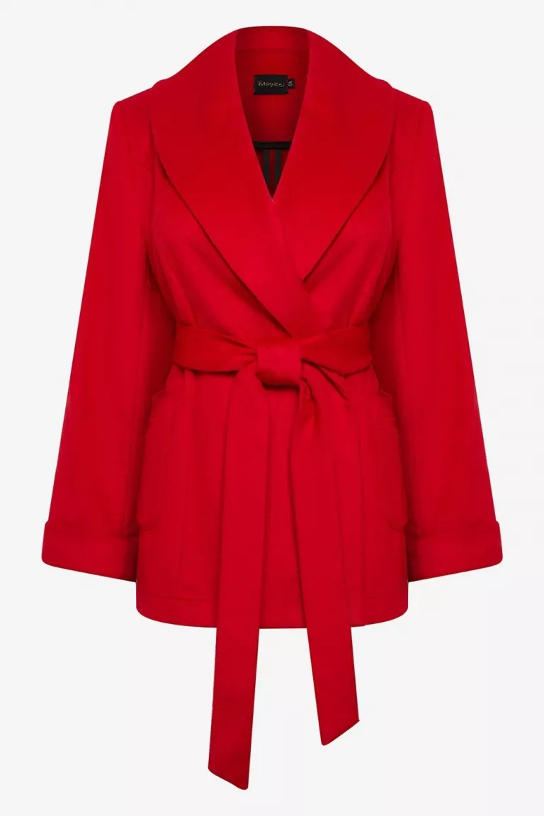 Полупальто а-силуэта, на боковом запахе, из смесовой шерсти, без подкладки. Карманы накладные. Длина миди. Воротник шалевый. Рукав длинный, пройма широкая. Комплектуется поясом.