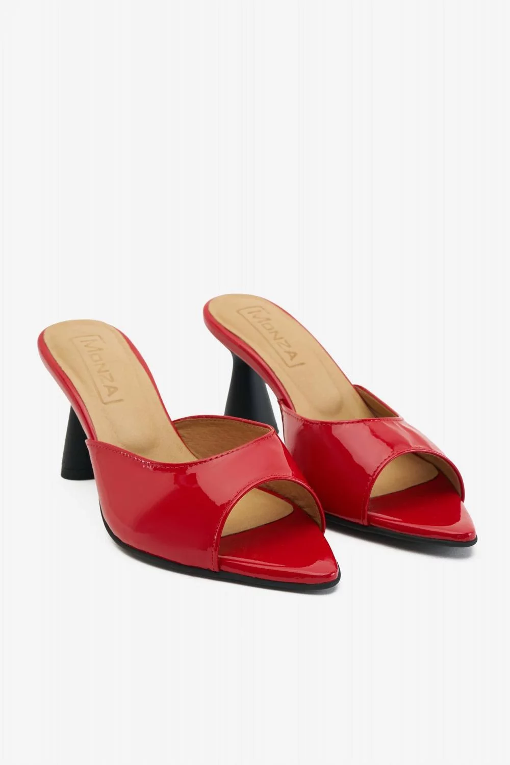 Мюли пип тэ из красной лаковой кожи