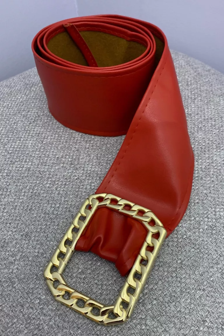 Красный широкий ремень из мягкой кожи с золотой пряжкой