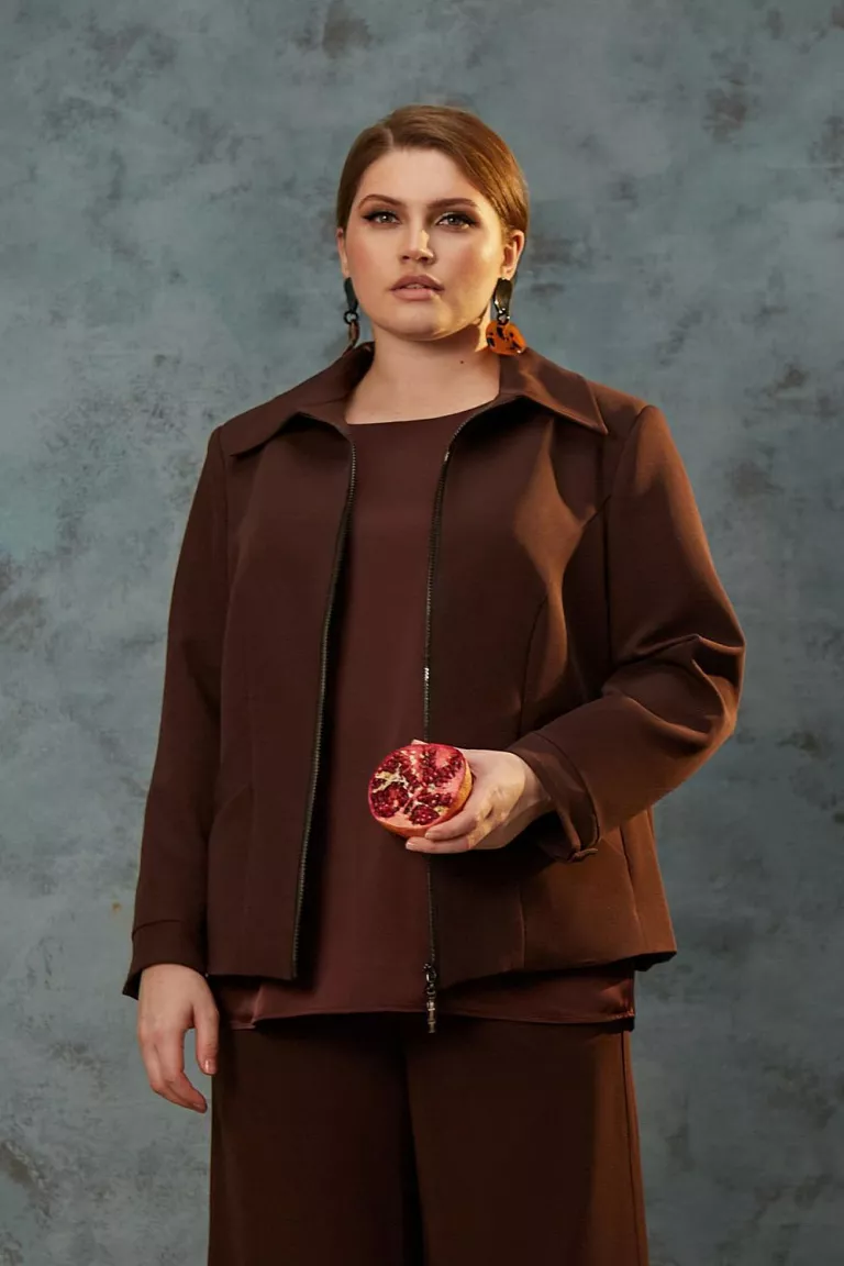Куртка жакет на молнии темно-коричневого цвета