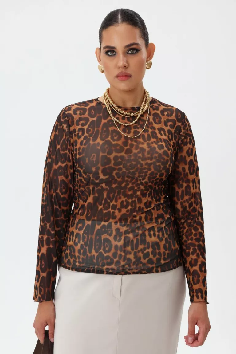 Лонгслив сетка с леопардовым принтом