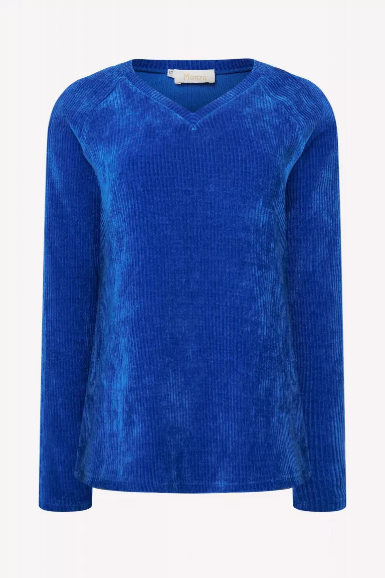 Лонгслив из трикотажного велюра в рубчик c с хорошей эластичностью. Рукав реглан, длинный, вырез V-образный.