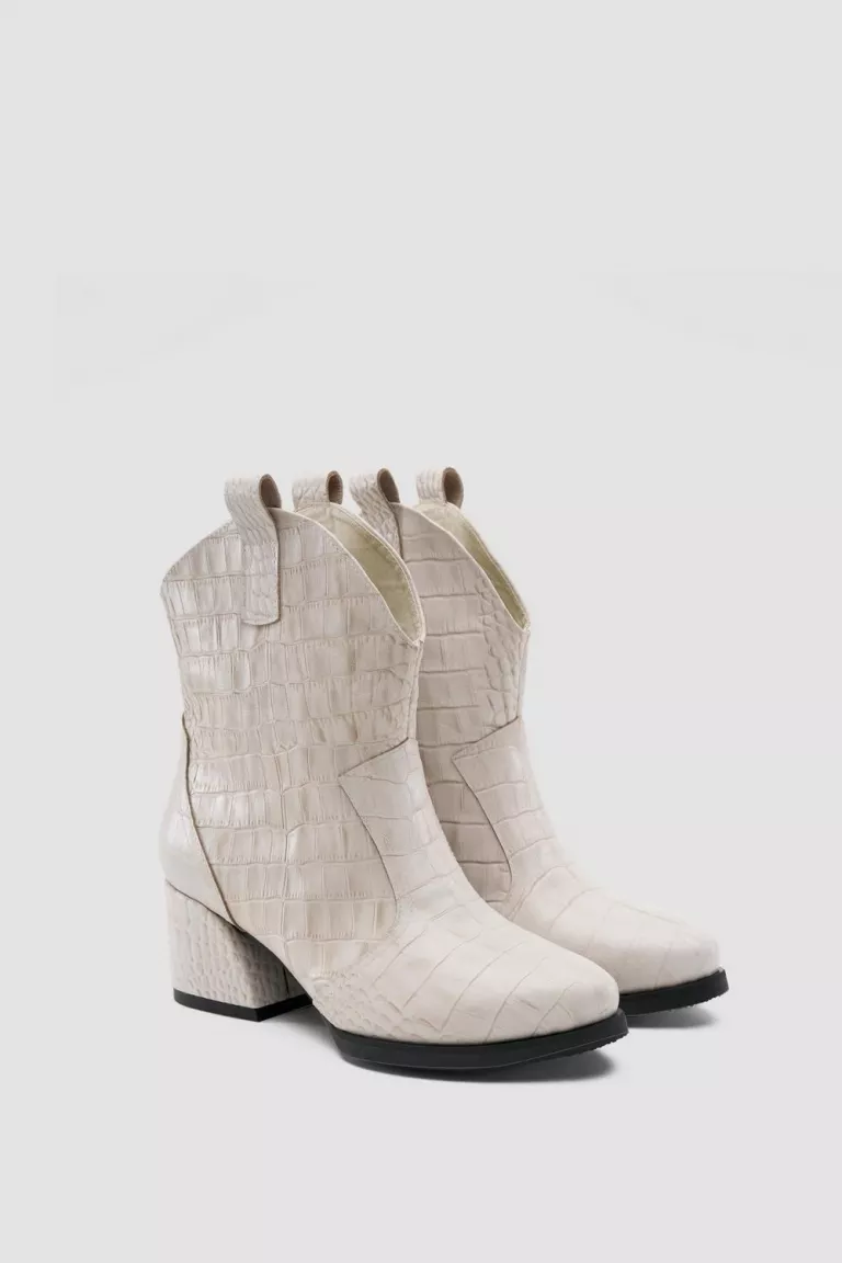 Молочные кожаные казаки с эффектом рептилии и увеличенной полнотой