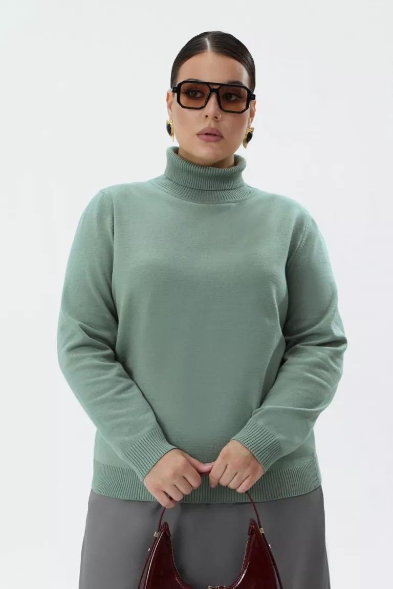 Водолазка бадлон оверсайз с высоким воротом из смесовой вискозы. Длина до середины бедра. Горловина гольф. Рукав длинный, линия плеча спущена, пройма глубокая.