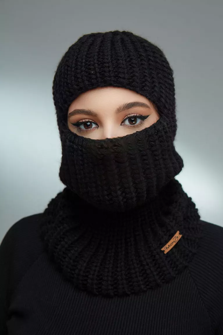 Объемная вязаная балаклава однослойная черного цвета