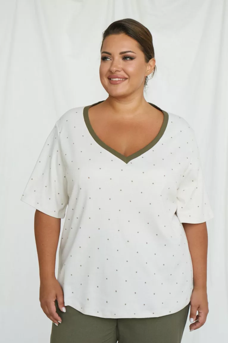 Футболка оверсайз из хлопка с принтом и отделкой рибана. Длина до середины бедра. Горловина с углубленным v-вырезом, рукав короткий. Базовая вещь в вашем гардеробе. Стиль оверсайз — это свобода движения. Ведь такая одежда позволяет чувствовать себя комфортно и стильно одновременно. Стиль oversize подходит для любой фигуры, ведь он может скрыть недостатки фигуры и подчеркнуть ее достоинства. Стиль оверсайз подразумевает намеренный выбор вещей большего размера, чем необходимо, включает в себя предметы одежды мешковатого кроя. В данном стиле привлекают именно свобода кроя, непринужденность и комфорт, который так важен в повседневной жизни. Оверсайз подчеркивает женственность, при этом позволяет скрыть некоторые недостатки фигуры и подчеркнуть достоинства.