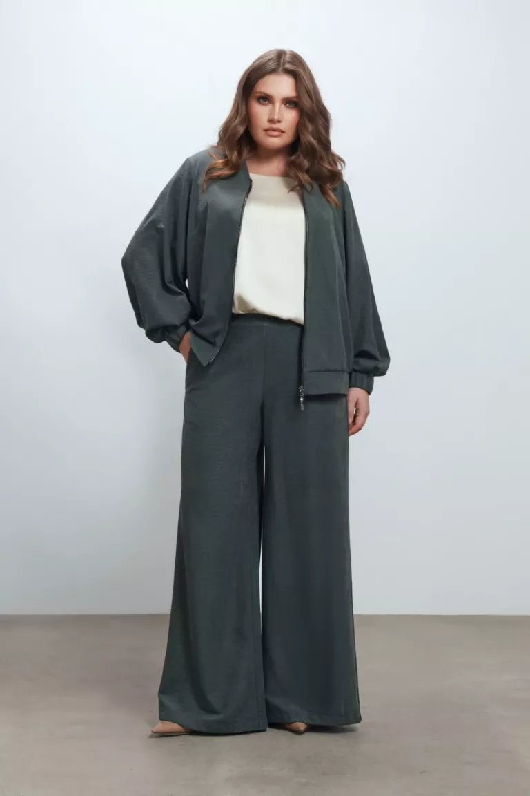 Палаццо из вискозного шелка с тач-эффектом зеленый