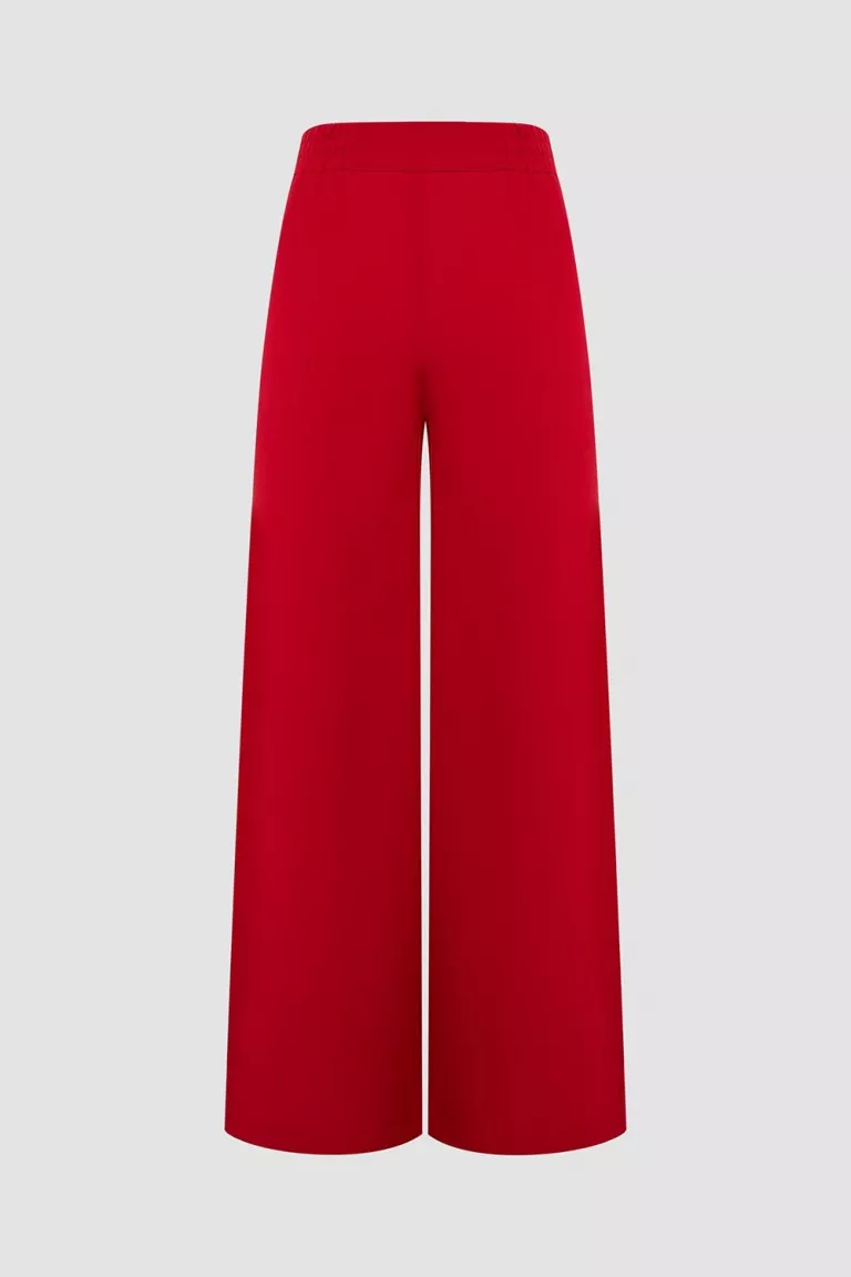 Палаццо красного цвета из облегченной костюмной ткани