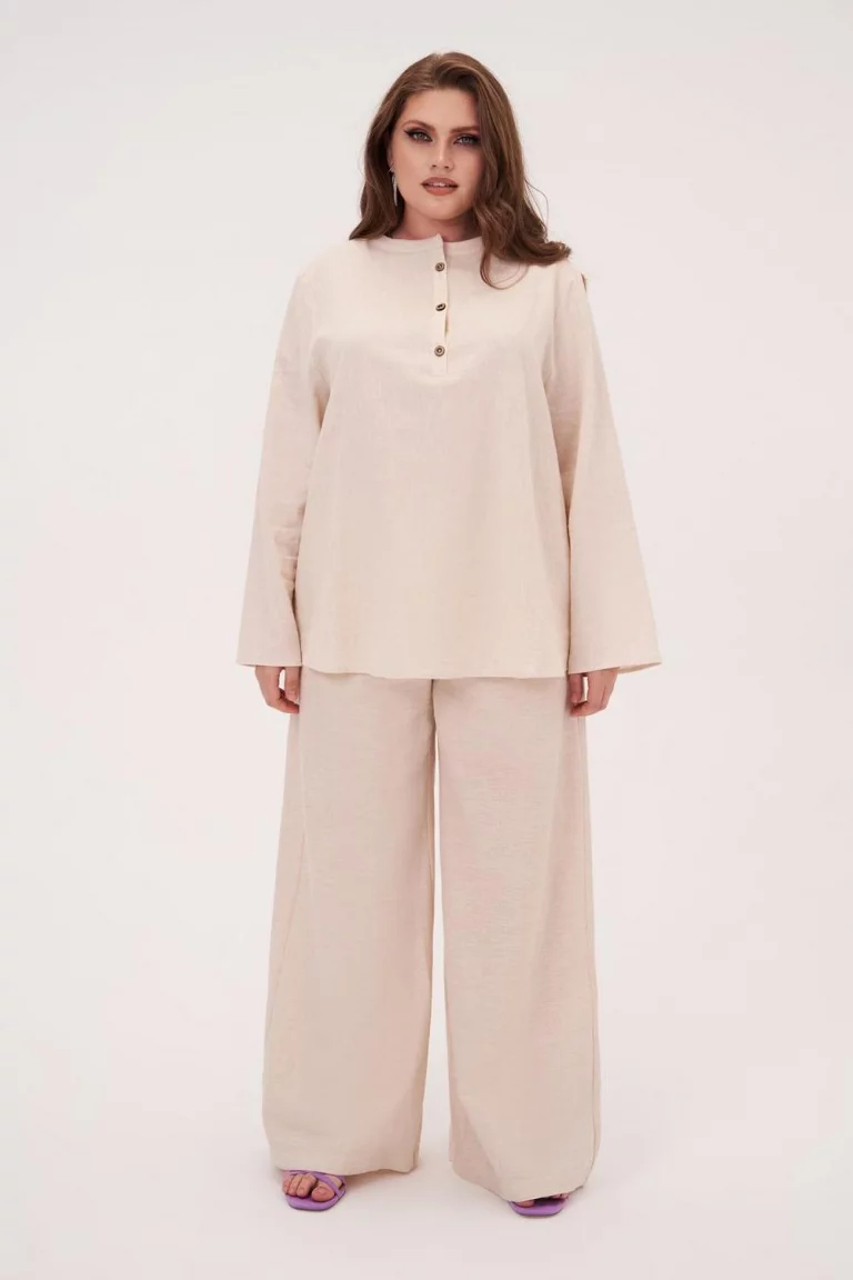 Брюки палаццо из 100% льна в молочном оттенке