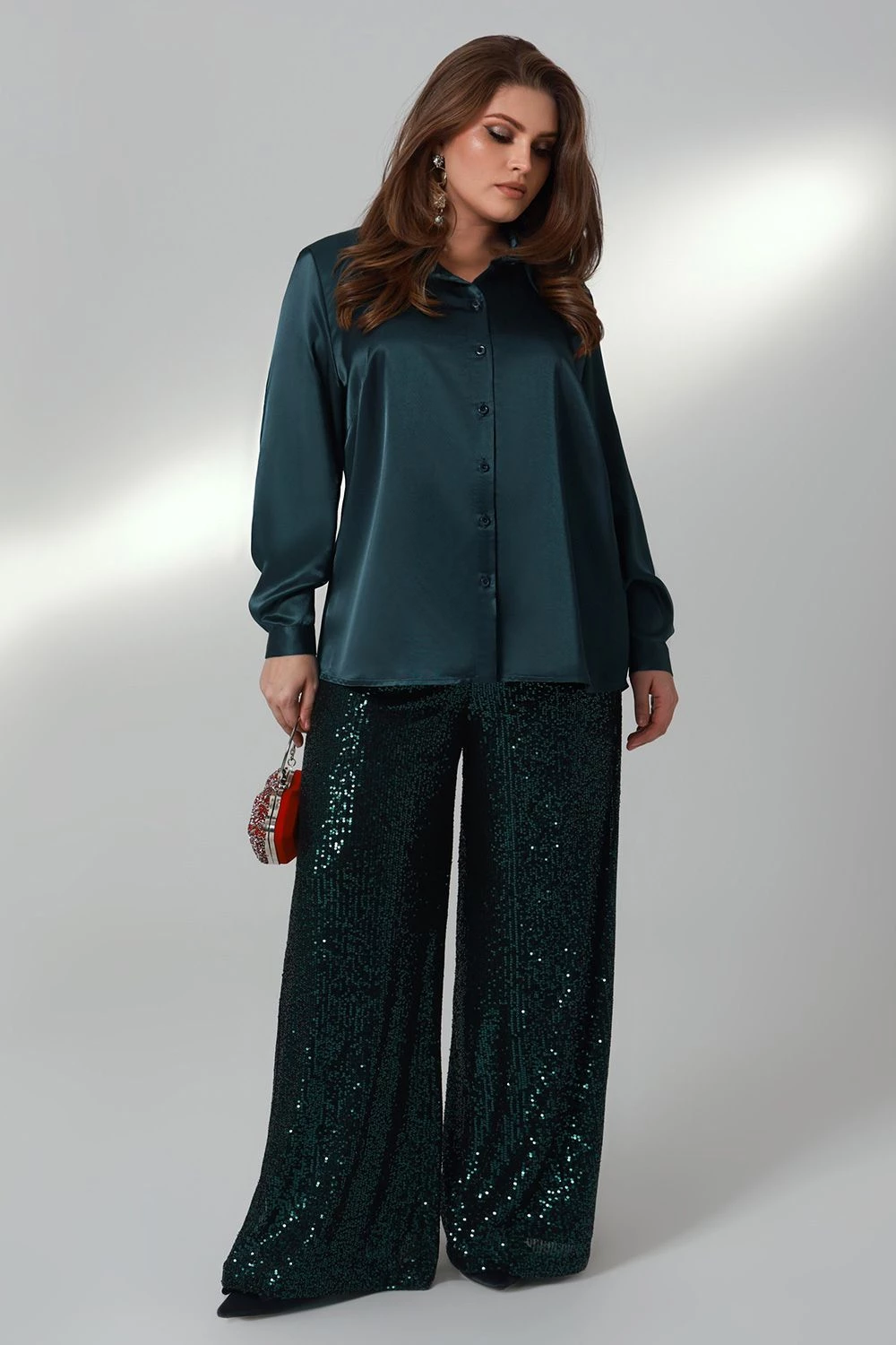 Палаццо из смесовой вискозы с пайетками, на шелковой подкладке. Брюки широкие, на поясе-резинка.