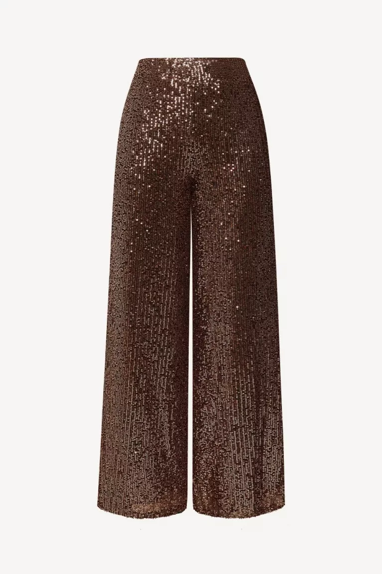 Палаццо из смесовой вискозы с пайетками, на шелковой подкладке. Брюки широкие, на поясе-резинка.