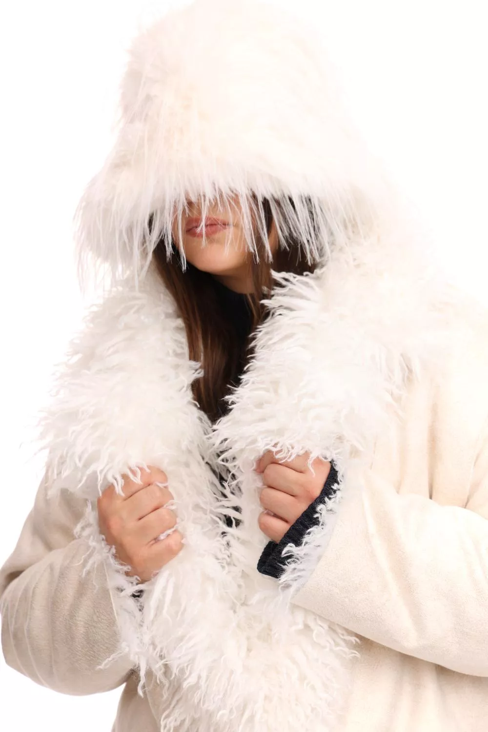 Не стирать, не гладить, не отпаривать, не отбеливать, не применять барабанную сушку. Рекомендована деликатная сухая химическая чистка. Не допускать нагрева от отопительных приборов. Беречь и защищать от моли и прямых солнечных лучей. При бережной каждодневной эксплуатации, изделие не требует ухода в течении всего сезона носки. Натуральная шерсть имеет природные свойства отталкивать частицы грязи. Если изделие попало во влажную среду надо его посушить вдали от отопительных приборов. Не рекомендуется вычесывать мех пластиковыми и металлическими расческами, они могут повредить структуру и фактуру ворса.