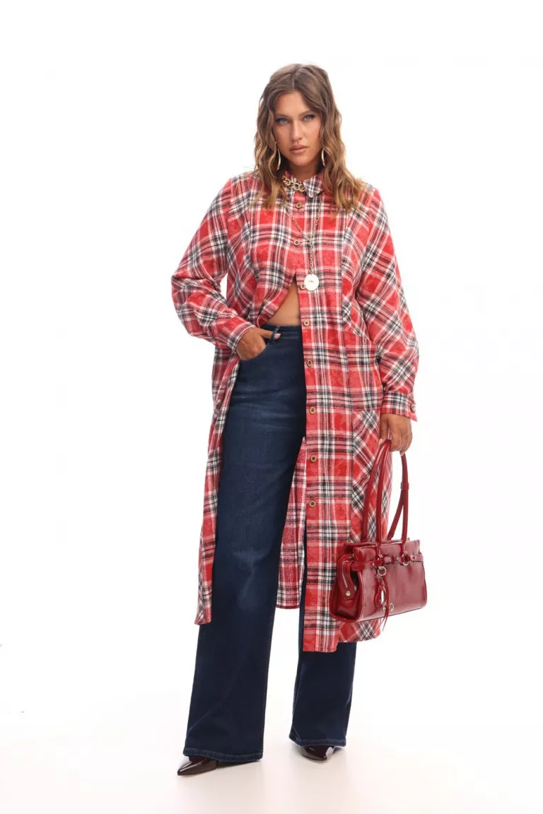 Платье рубашка из вареного хлопка с принтом клетка