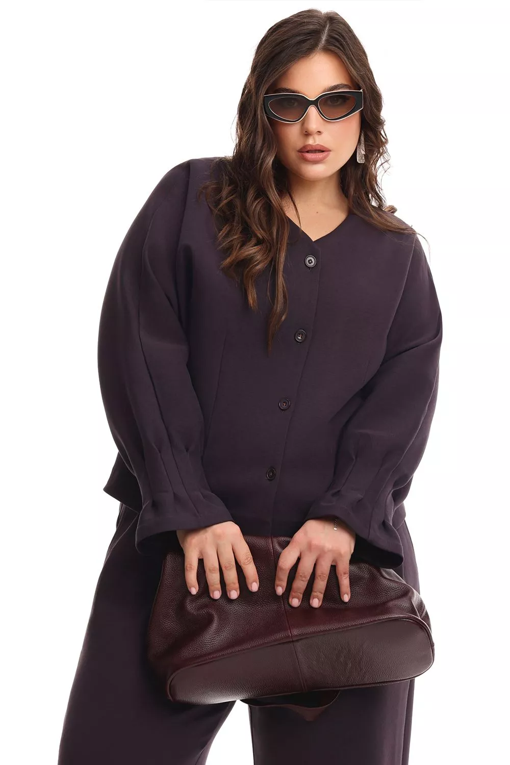 Трикотажный жакет в стиле леди лайк с присборенной манжетой