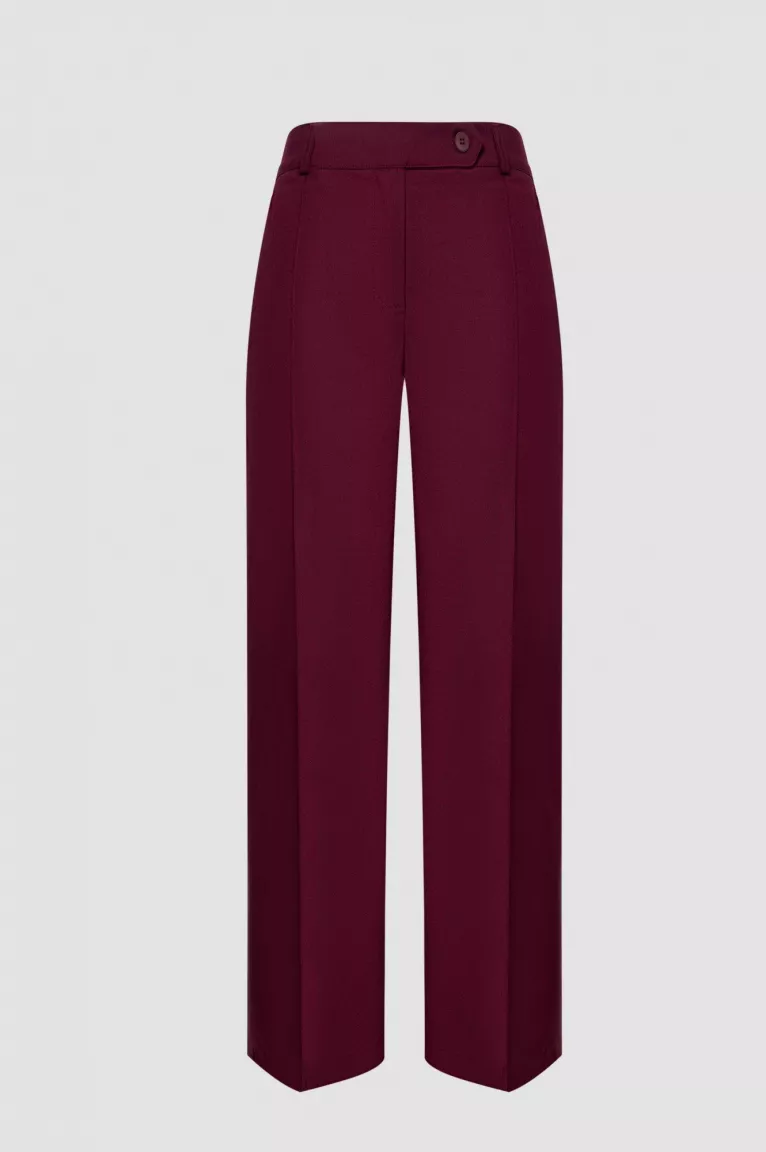 Классические широкие брюки из смесовой шерсти — универсальный элемент базового гардероба. Они выполнены в строгом стиле, с высокой посадкой, поясом на резинке сзади и застёжкой-молнией. Простроченные стрелки спереди и сзади придают образу аккуратность и элегантность. Брюки имеют стандартную длину, что делает их подходящими для создания деловых и повседневных образов.
