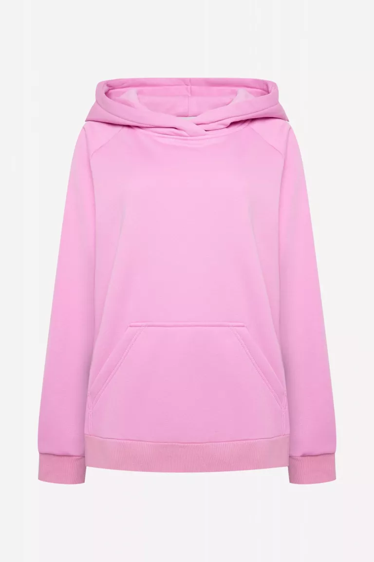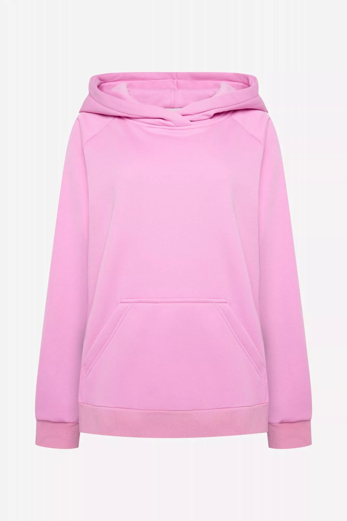 Худи из качественного хлопкового трикотажа, повседневно-спортивного стиля, свободного силуэта, с несъёмным капюшоном. Длина до середины бедра. Рукав реглан, длинный, на манжете, пройма широкая. Карманы кенгуру.